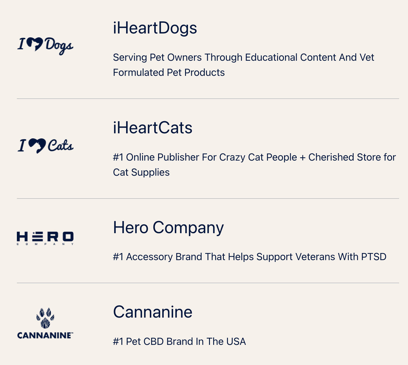 We've grown the world's largest pet communities online including 50 million followers across social media, 5 million email subscribers, worked with over 500 products, and created over $200 million dollars in revenue.